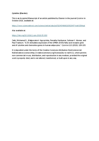 Trayhurn et al. Cytokine.pdf - Accepted Version Available under License Creative Commons Attribution Non-commercial No Derivatives. Download (908kB) | Preview |