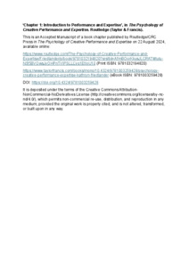 Friedlander, Kathryn J. (2024) The Psychology of Creative Performance and Expertise. Routledge. Taylor & Francis, Abingdon, Oxon, UK/New York, USA, pp. 3-30. ISBN Print ISBN: 9781032194820 / eBook ISBN: 9781003259428