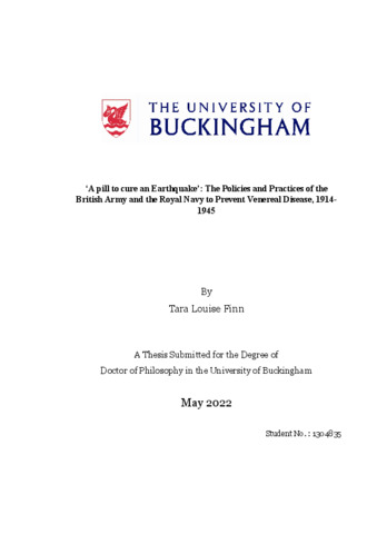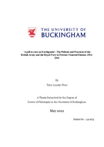 Finn, Tara Louise (2022) 'A pill to cure an Earthquake': The Policies and Practices of the British Army and the Royal Navy to Prevent Venereal Disease, 1914-1945. Doctoral thesis, The University Of Buckingham.