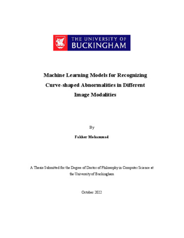 Mohammad, Fakher (2022) Machine Learning Models for Recognizing Curve-shaped Abnormalities in Different Image Modalities. Doctoral thesis, The University Of Buckingham.