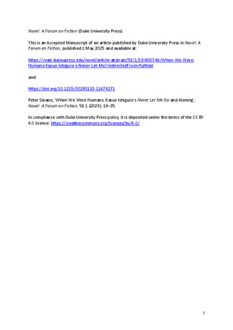 Sloane, Peter (2025) When We Were Humans: Never Let Me Go and ALoning. Novel: A Forum on Fiction, 58 (1). pp. 19-35. ISSN 0029-5132