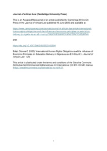 Edeji, Obinna C (2025) International Human Rights Obligations and the Influence of Economic Principles on Education Delivery in Nigeria as an E-9 Country. Journal of African Law. pp. 1-20. ISSN 0021-8553