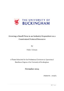 Colman, Pablo (2024) Growing a Small Firm in an Industry Dependent on a Constrained Natural Resource. Doctoral thesis, The University of Buckingham.