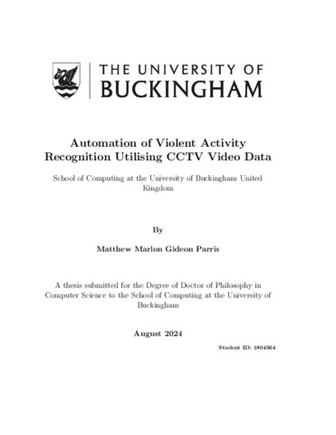 Parris, Matthew M. G. (2024) Automation of Violent Activity Recognition Utilising CCTV Video Data. Doctoral thesis, The University of Buckingham.
